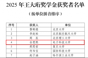 近日,中国光学学会(COS)公布了2025年王大珩奖学金(原王大珩光学奖学生奖)评选结果,我校光电科学与工程学院郑永豪教授团队2025届博士毕业生孙梵熙同学从众多候选者中脱颖...