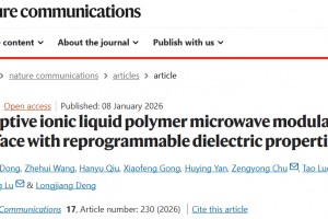 近日,电子科学与工程学院电磁辐射控制材料与技术团队在国际综合期刊《Nature Communications》上发表题为 “Adaptive ionic liquid polymer microwave modulation surface with reprogrammable dielectric properti...