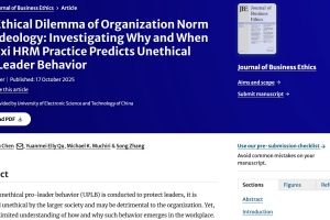 近日,经济与管理学院工商管理系2023级博士研究生张琪在陈璐教授指导下完成的研究成果“The Ethical Dilemma of Organization Norm and Ideology: Investigating Why and When Guanxi HRM Practice Predicts Unethica...