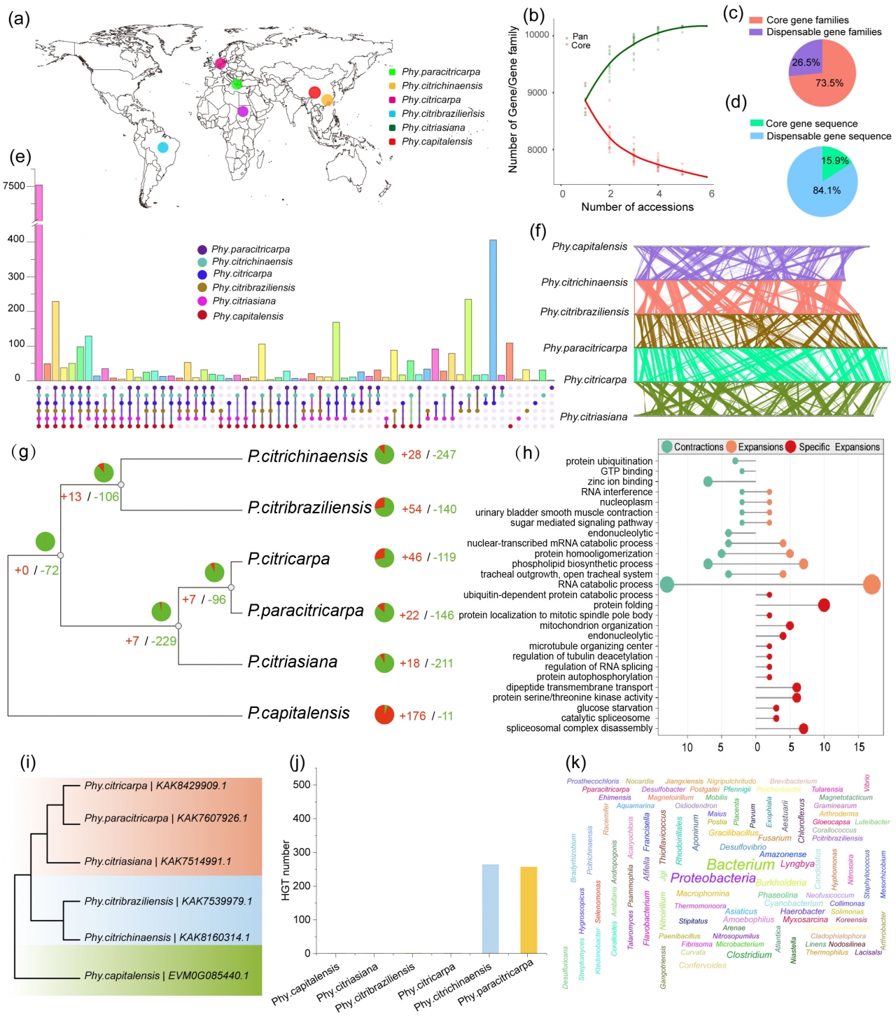 图4. 跨物种的泛基因组与物种基因组进化