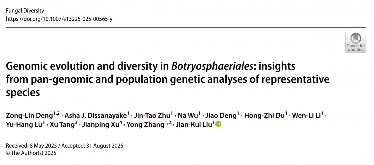 近日,生命学院真菌与植物功能基因组学研究团队在真菌学国际顶级期刊Fungal Diversity(IF: 24.8)在线发表了题为“Genomic evolution and diversity in Botryosphaeriales: insights from pan-genomic and population genetic analyses of representative species”的研究论文。电子科技大学生命学院2022级博士生邓宗林为论文第一作者,电子科技大学生命学院真菌与植物功能基因组学研究团队刘建魁教授、张勇教授为共同通讯作者,电子科技大学为论文第一署名单位。该研究得到了国家重大生物育种专项(2023ZD04076)、国家自然科学基金(31600032)以及中科院成都生物所青年科学家启动基金等项目的资助。