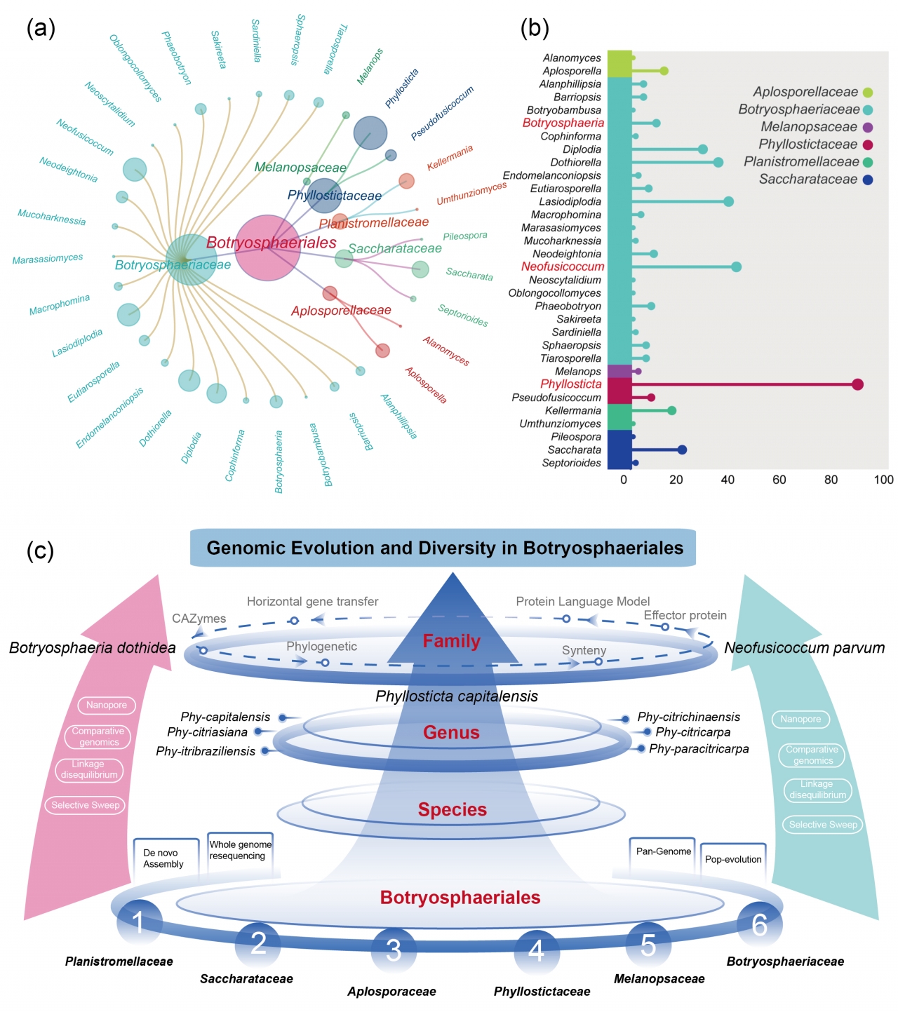 图1. Botryosphaeriales目真菌分类学背景与本文分析框架